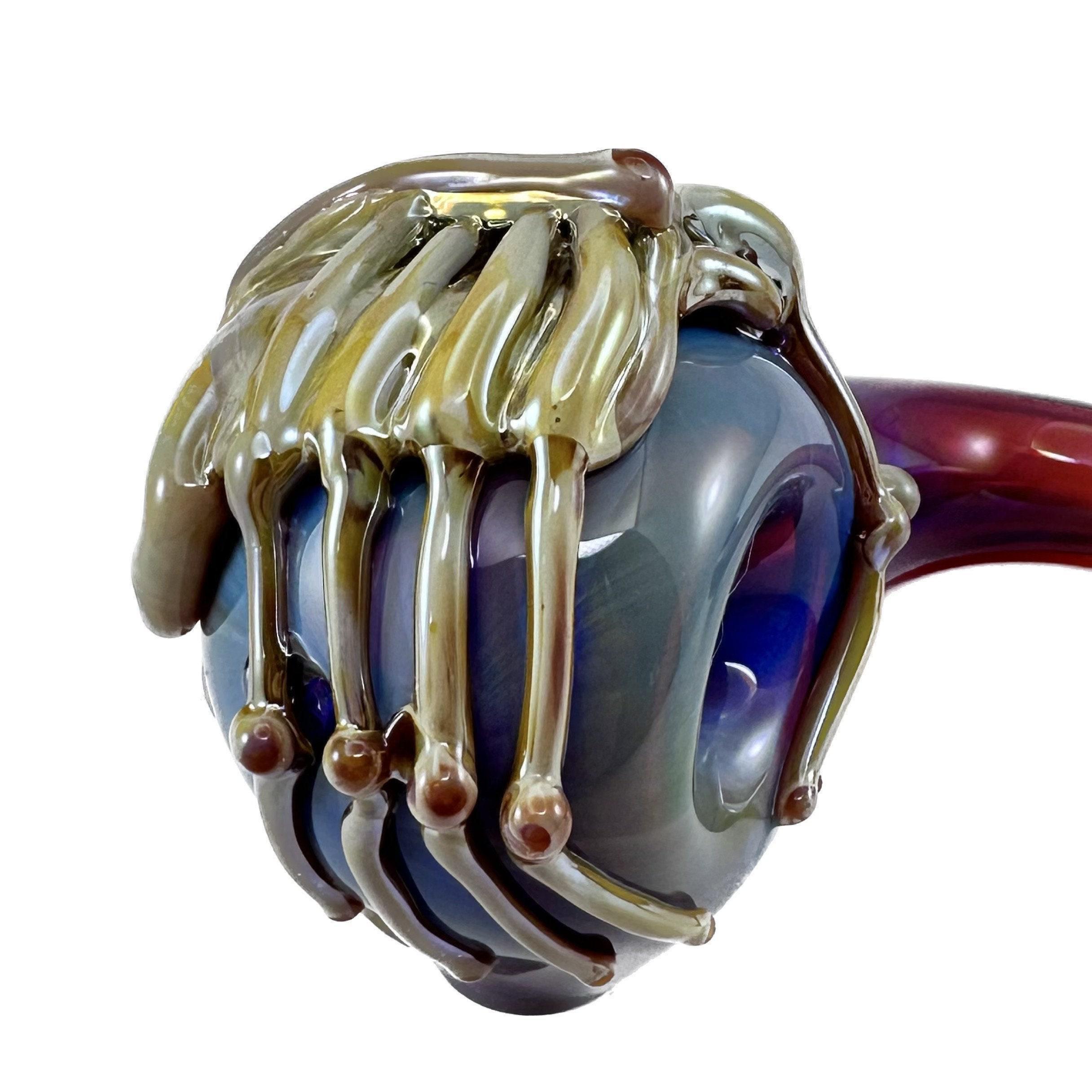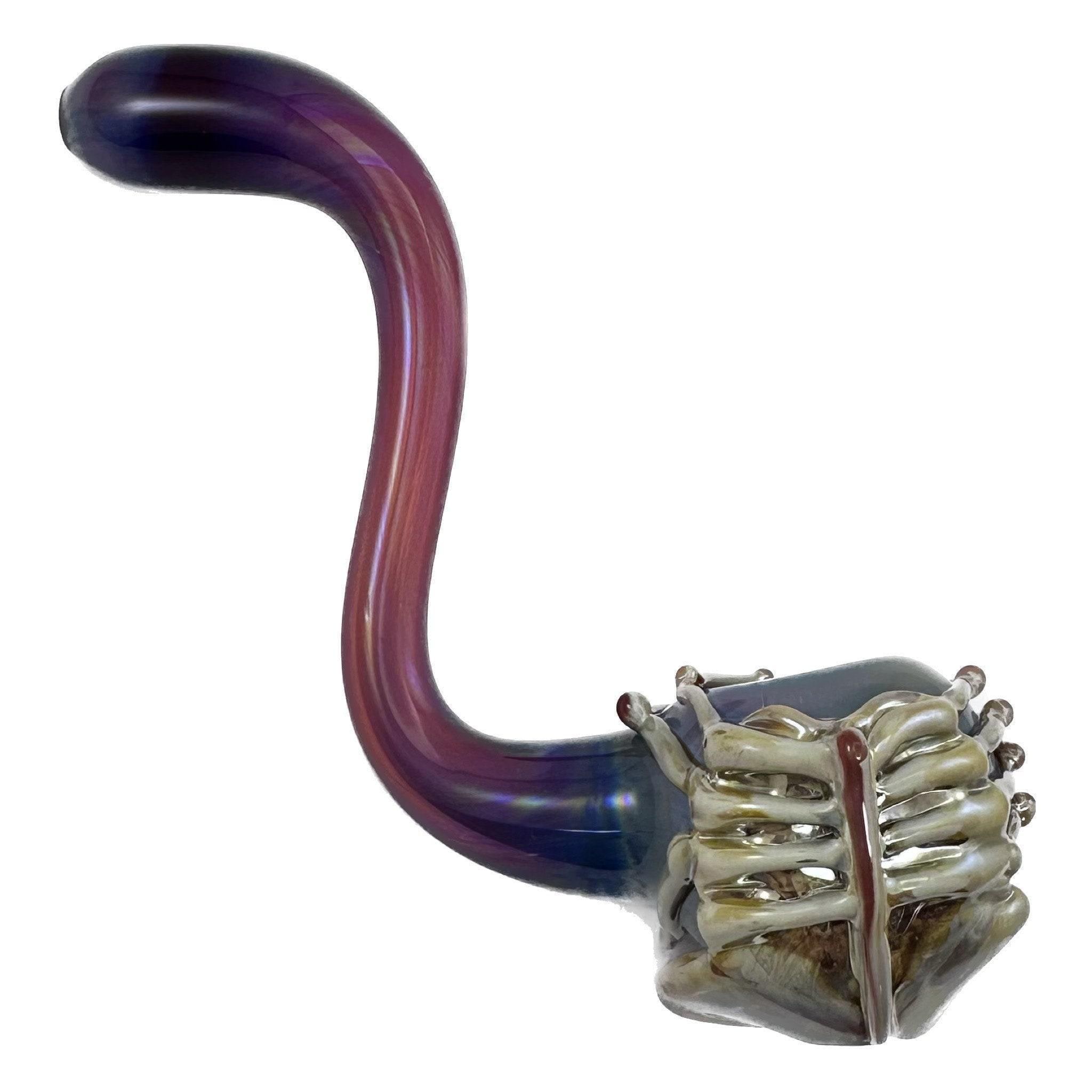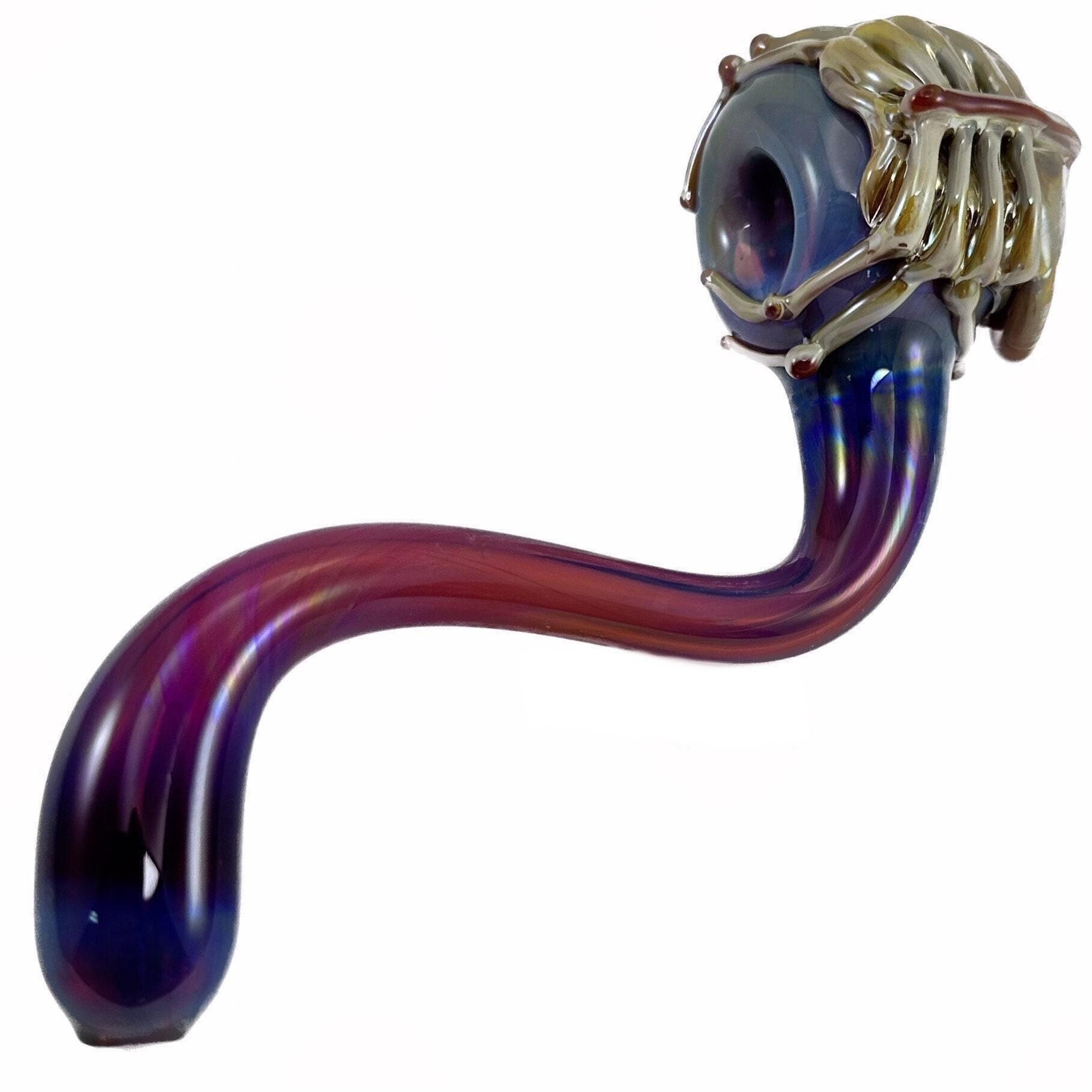 "Facehugger Alien" and "Alien Glass Pipe" fans will love this hand-blown sherlock pipe featuring a unique xenomorph facehugger design in custom colors. "Game Over Man" with this high-quality dry amber purple sherlock pipe, crafted from borosilicate (Pyrex) glass with thick walls for a cool, clean smoke and an unobstructed view of the bowl.