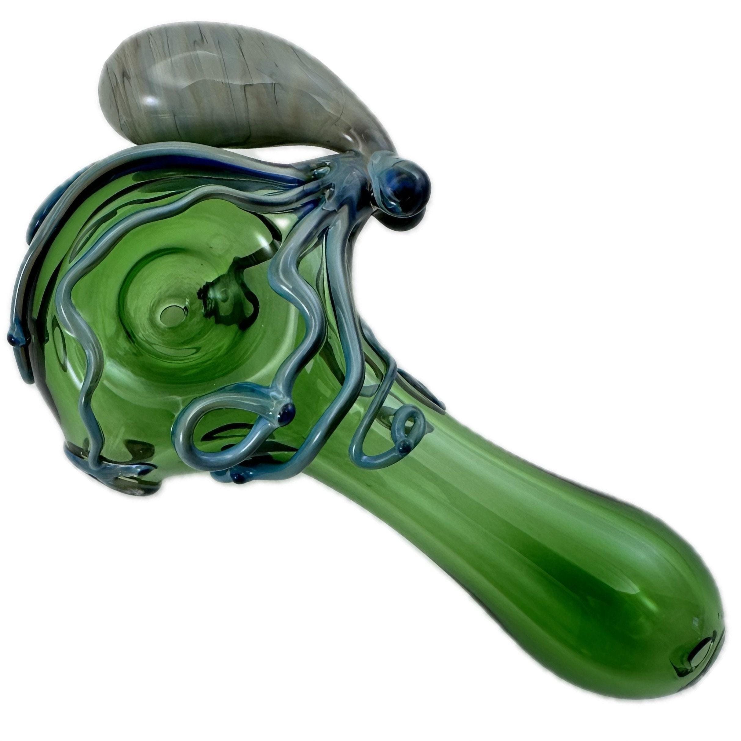 Discover the artistry behind this emerald green octopus glass pipe, a stunning example of hand blown art that brings the ocean's mystique to your collection. Each piece is carefully crafted using borosilicate glass, combining functional spoon design with intricate flamework that captures the beauty of sea life. Whether you’re selecting your favorite colors or customizing your own, this unique smoking bowl offers a personalized experience inspired by the depths of the sea.