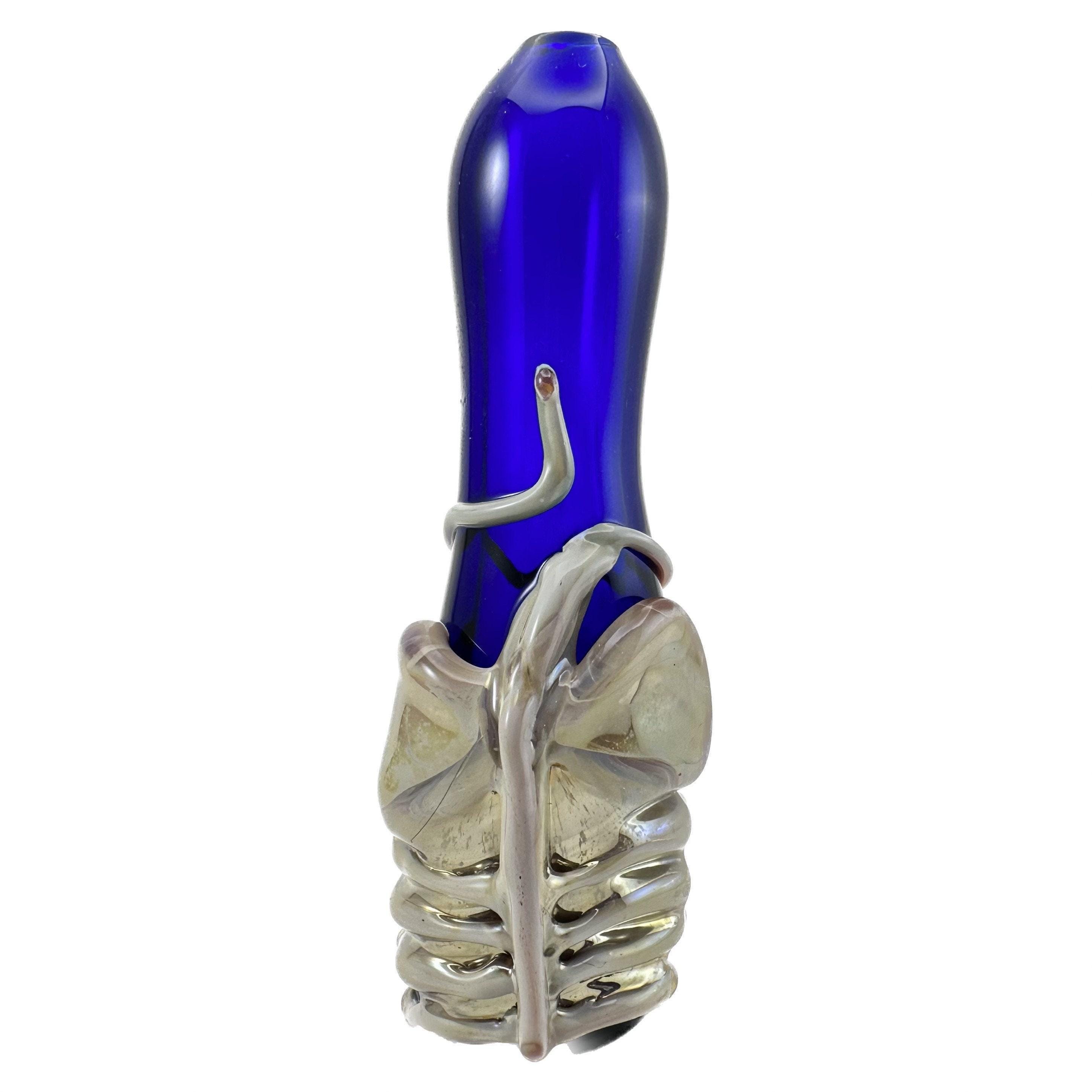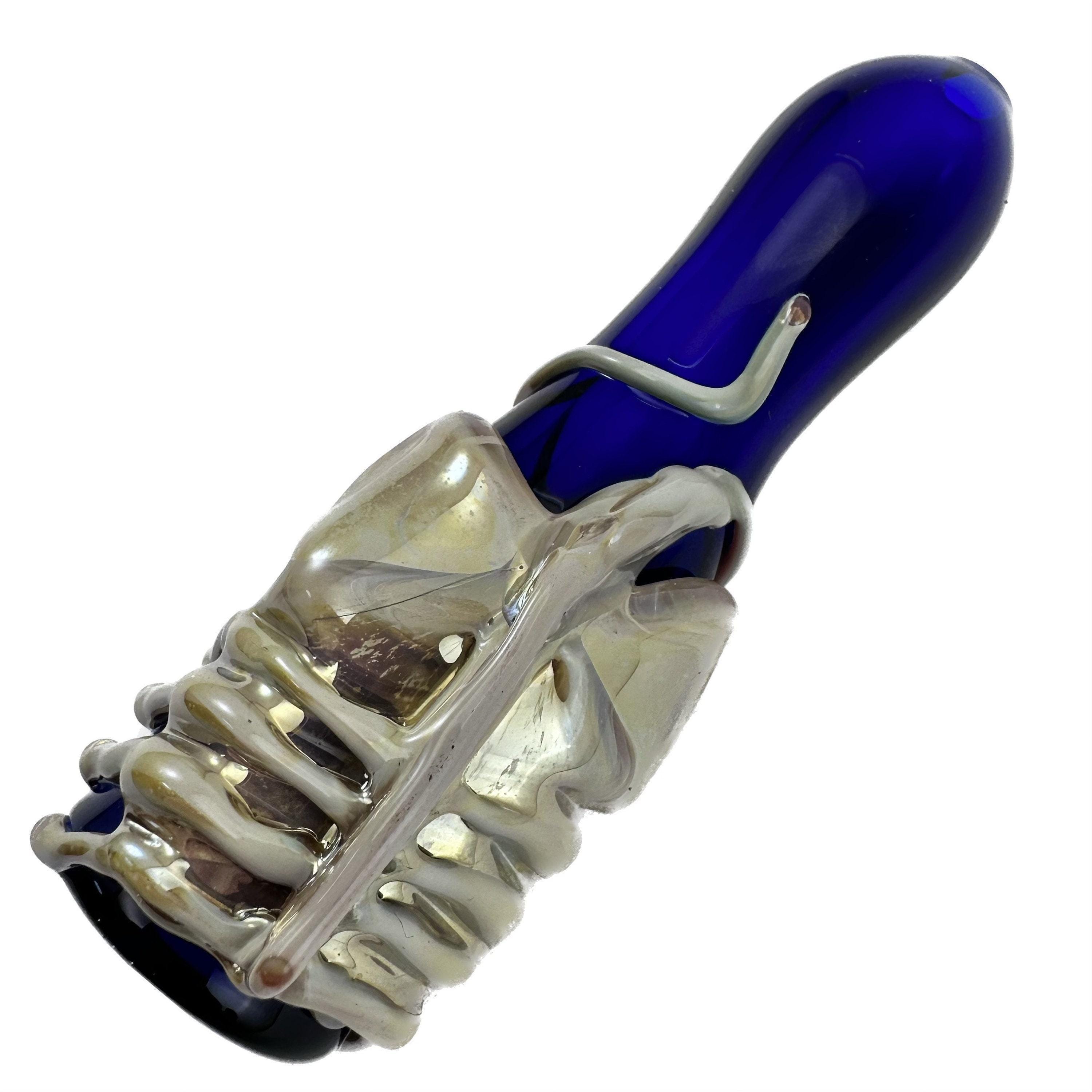 Approximate dimensions are 4" x 1.5" x 1" (10.16cm x 3.81cm x 2.45cm), making it a compact yet striking addition to any collection. Whether you're a chillum tobacco enthusiast or a fan of sci-fi collectibles, this thick wall borosilicate pipe combines style and function seamlessly.