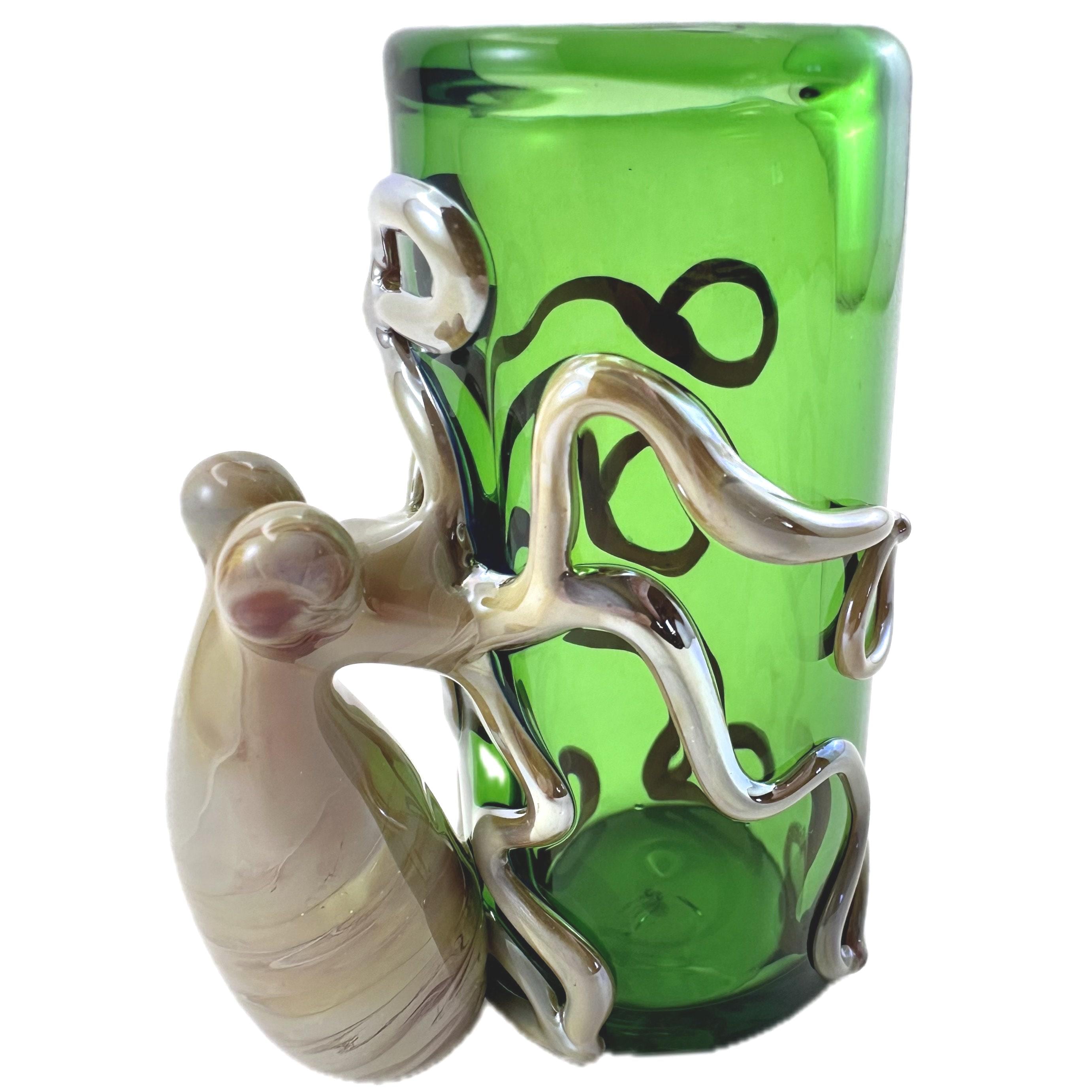 Explore more options with custom upgrades and matching pipes in your chosen colors. This glass jar with a cork combines artistic flamework octopi with practical design, making it a standout piece in any collection.