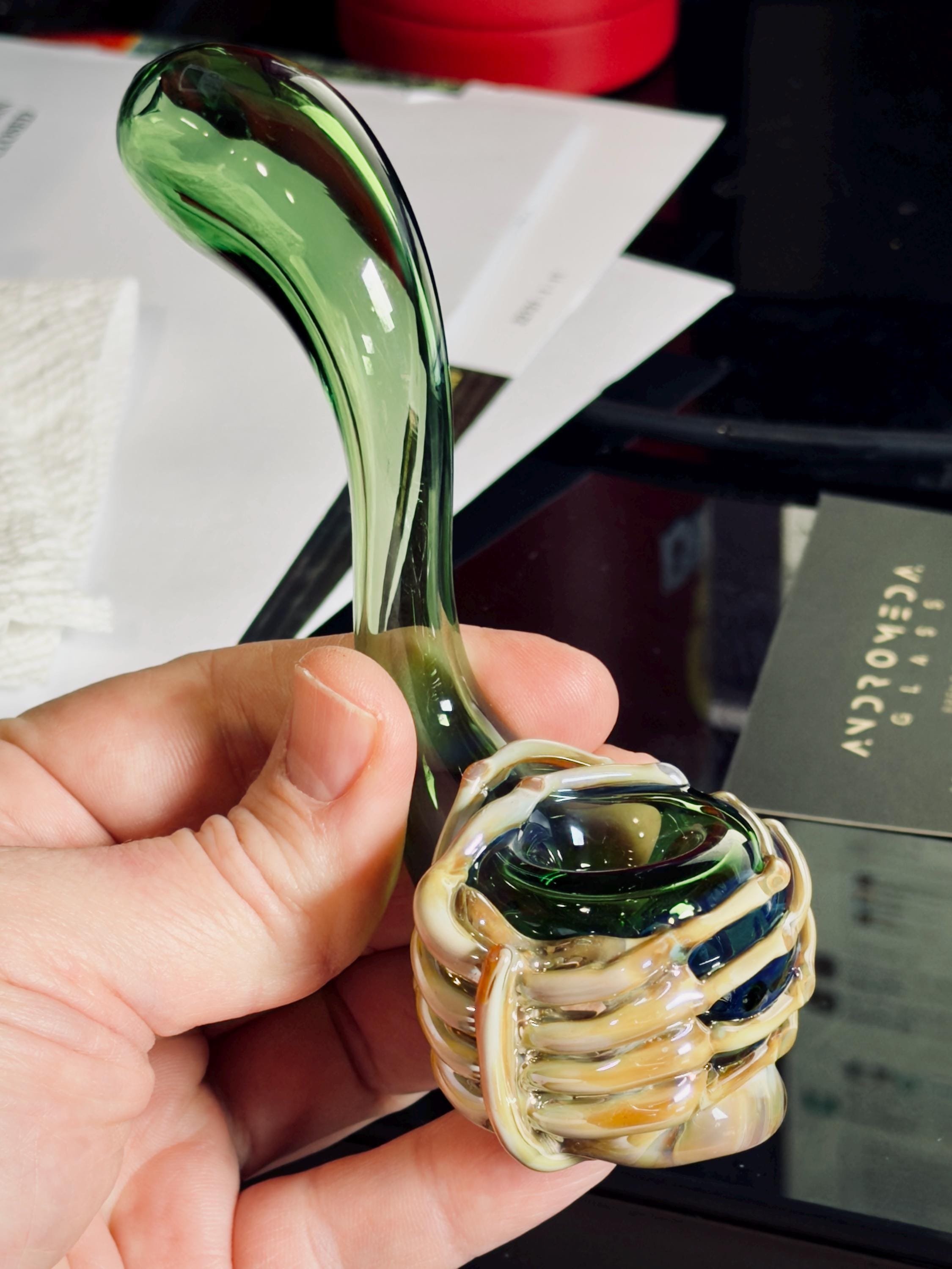 Elevate your collection with this stunning alien glass pipe that merges iconic sci-fi design with expert glass artistry. Perfect for fans of the alien movie franchise or anyone looking for a distinctive smoking accessory.