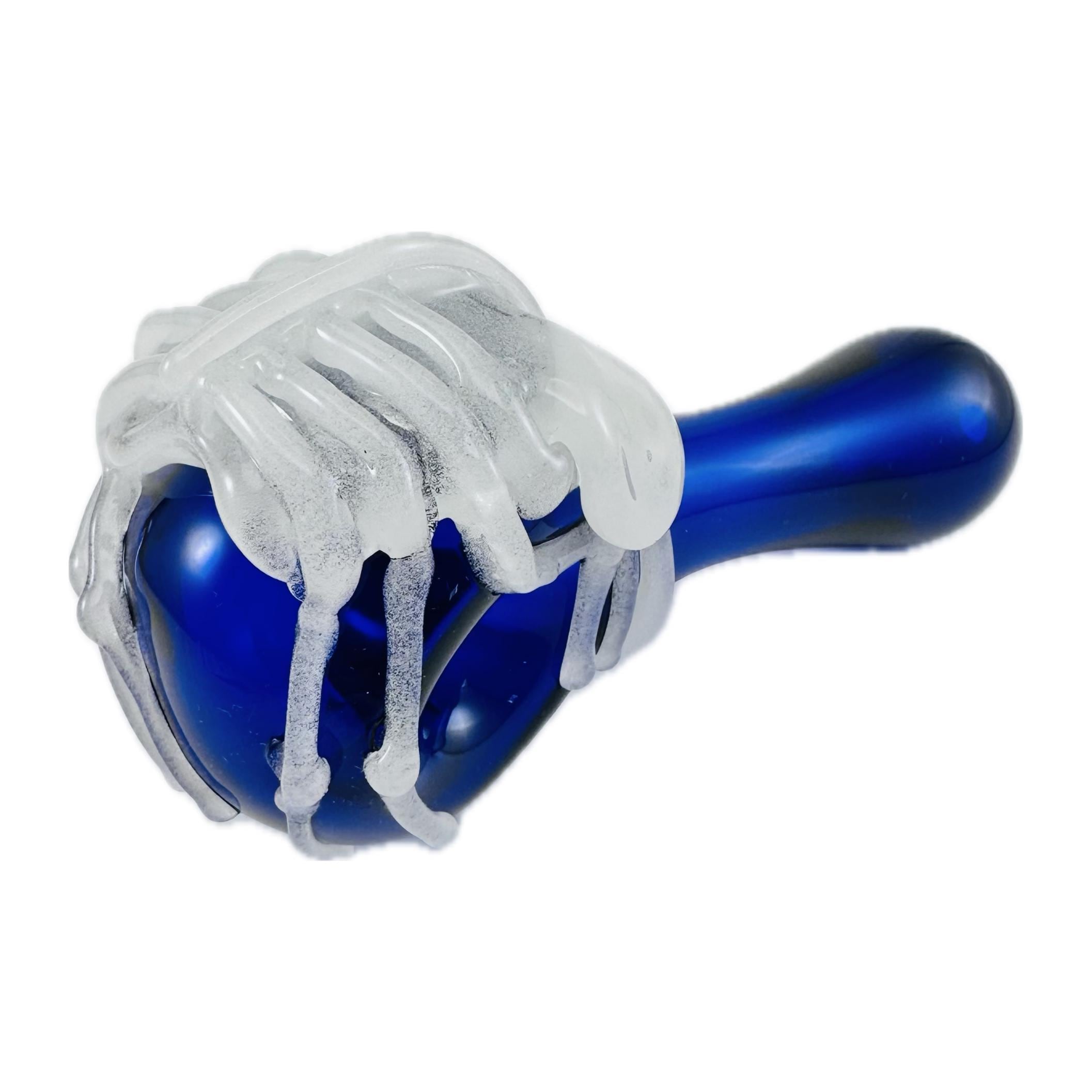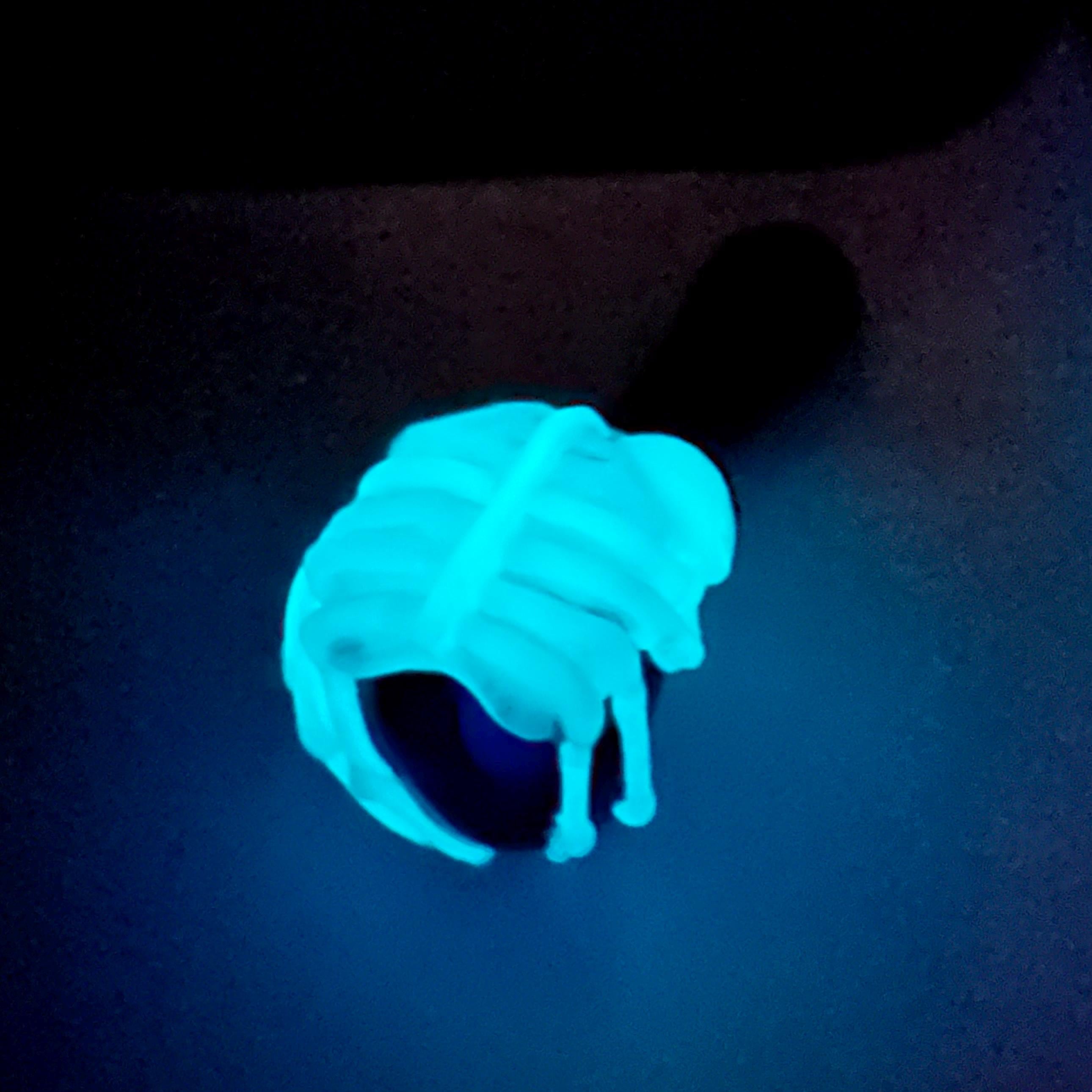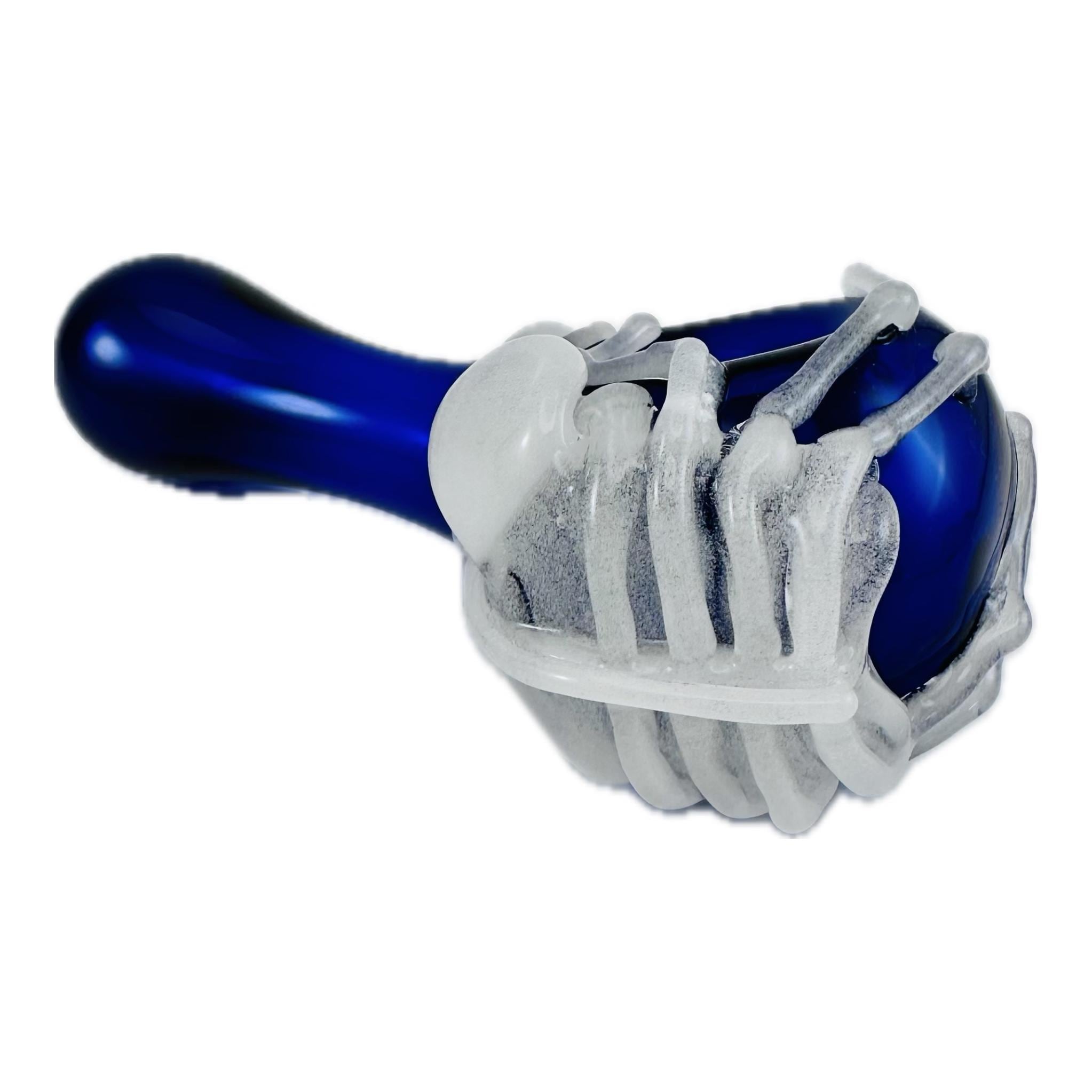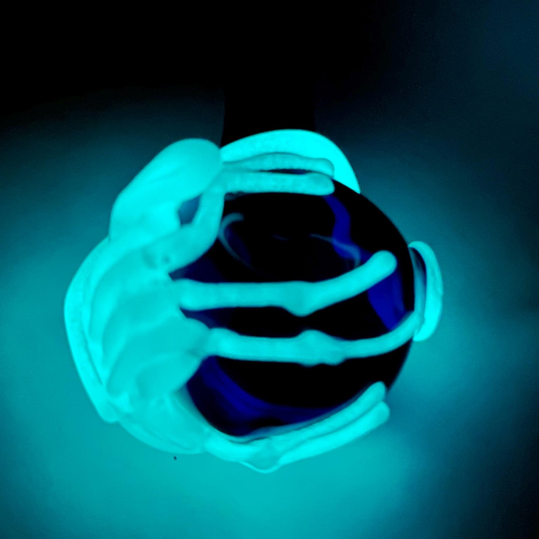 "Game Over Man, Game Over!" Beautifully crafted glass cobalt blue spoon pipe detailed with artistic flamework Aqua glow in the dark alien facehugger. Look skeleton white in the day but charge it with natural sunlight or lamp and it will glow at nighttime. Ready to Ship now.