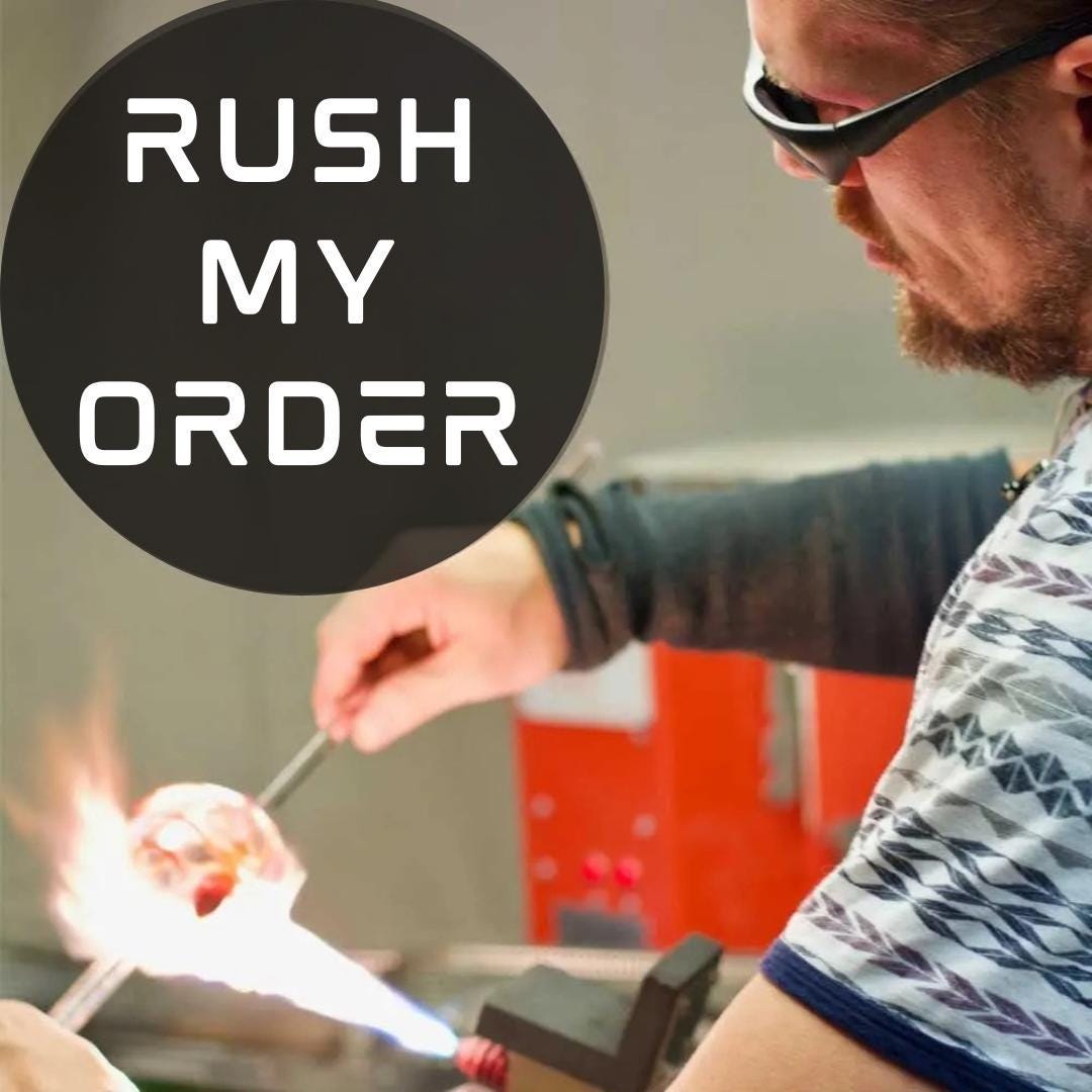 Experience the convenience of our rush order upgrade, designed for those who want it now without the wait. This rush add-on expedites processing, moving your custom made-to-order piece to the front of the line for faster delivery. With our prioritize processing, you can enjoy shorter lead times and receive your American made glass creation in just days.