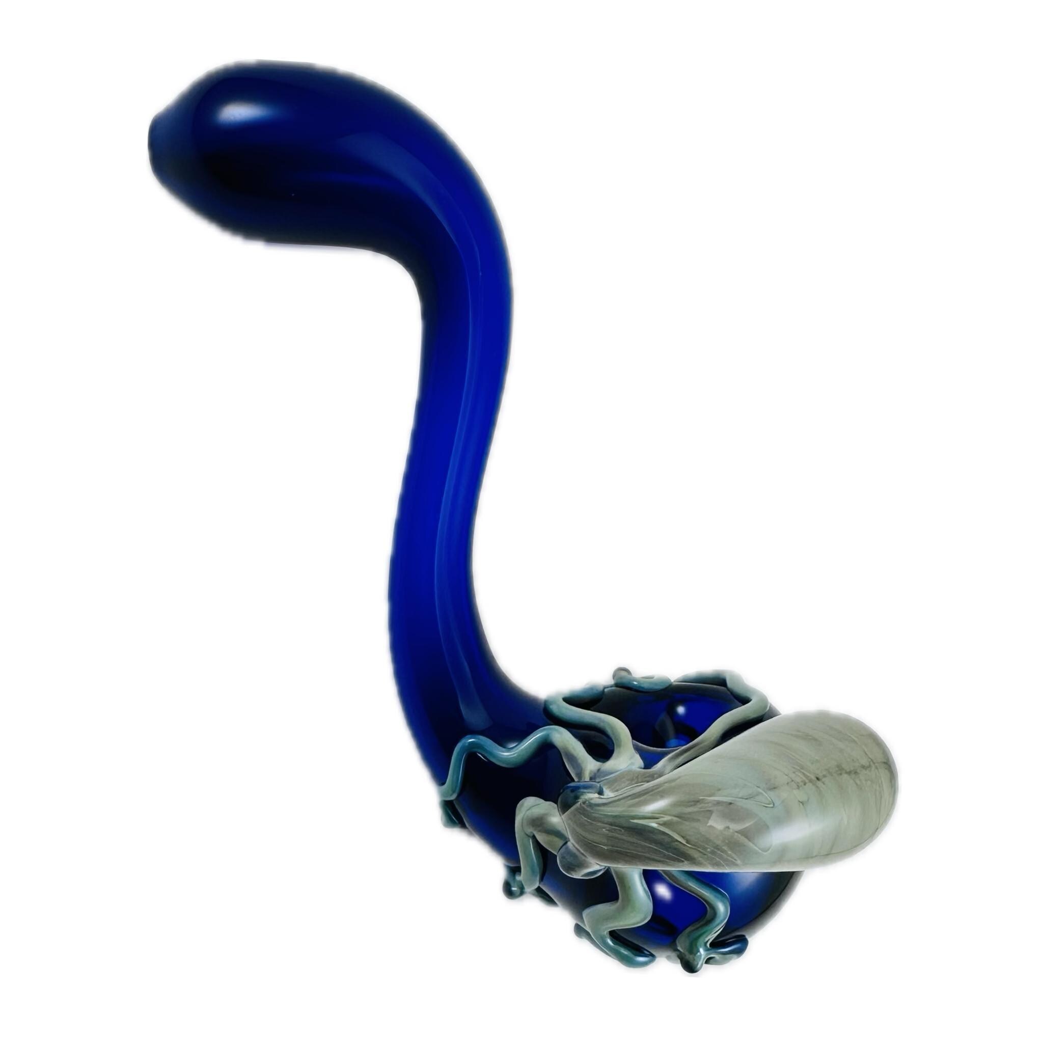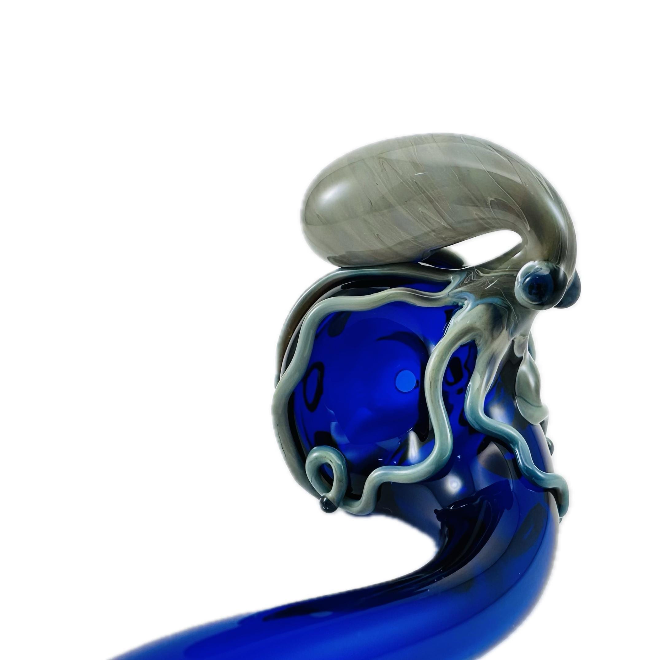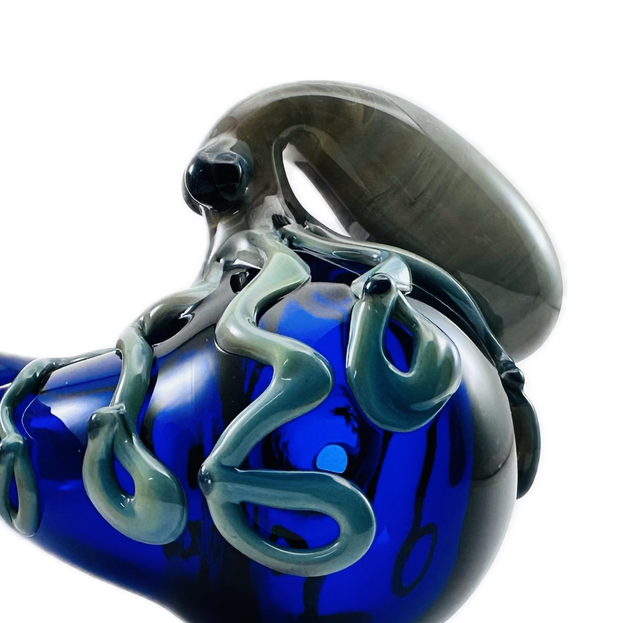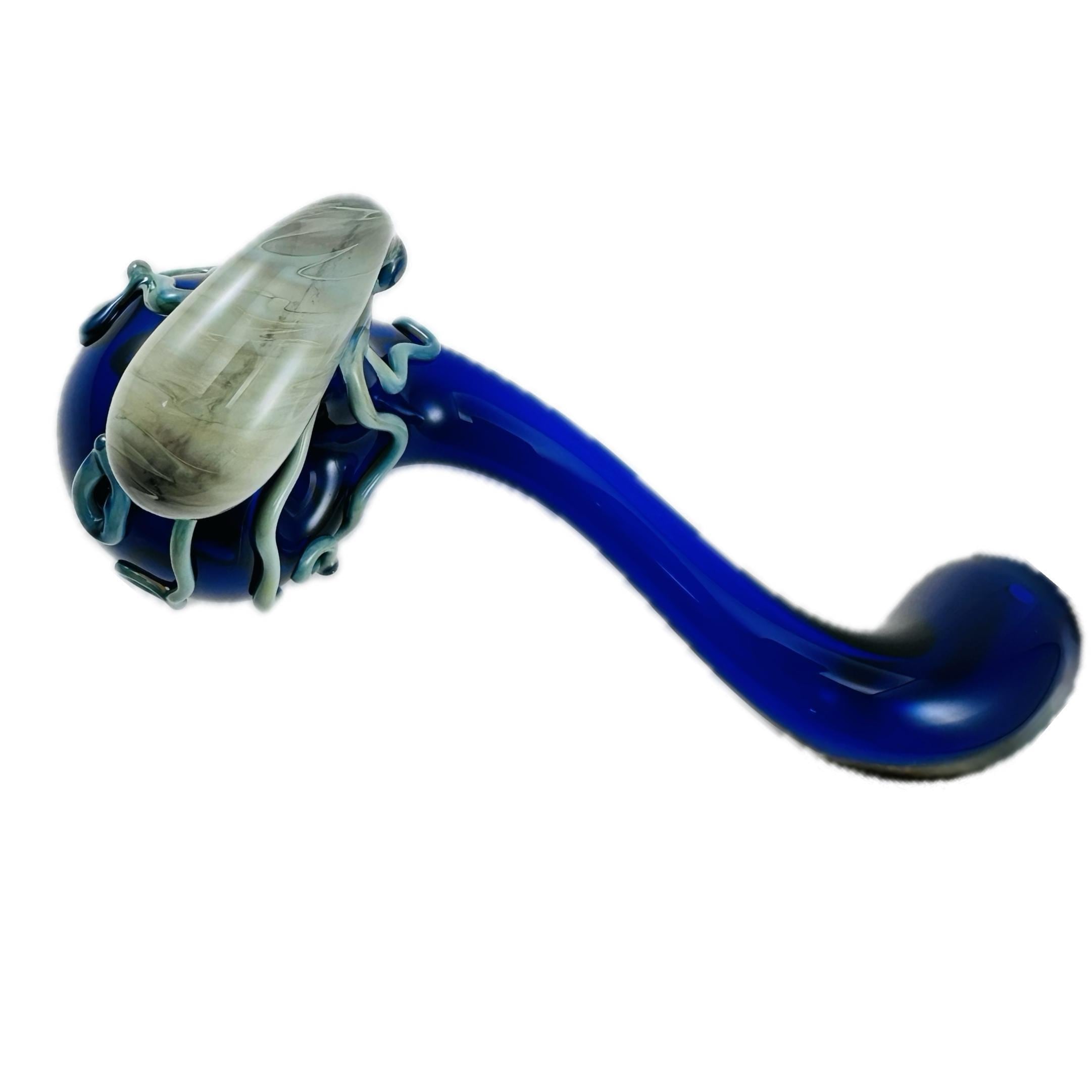 Discover the octopus Sherlock, a made to order, hand blown Pyrex glass pipe offering durable American craftsmanship and vibrant cobalt blue flamework. This high-quality dry sherlock pipe features unique octopus flamework and allows you to choose colors matching the picture or customize your own.