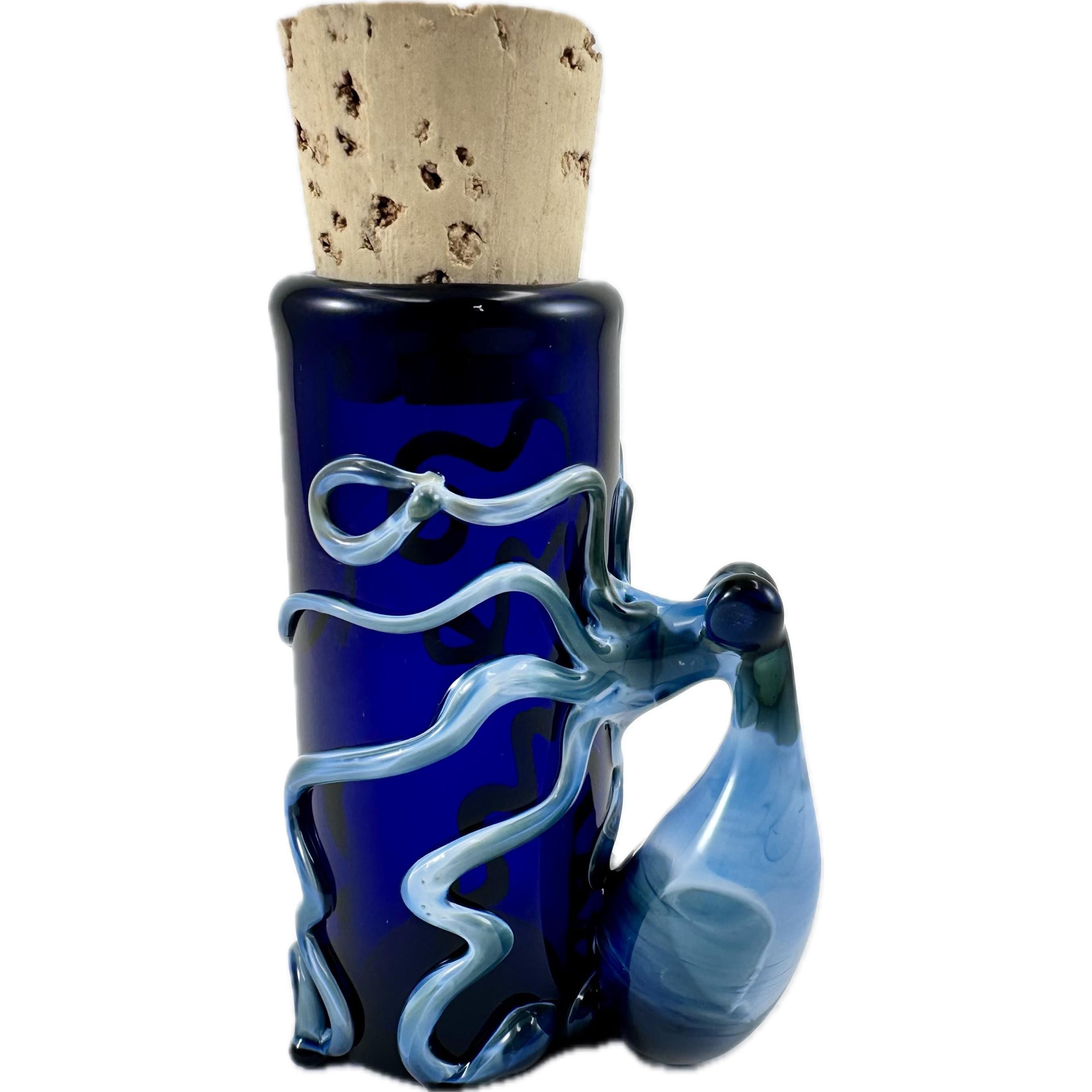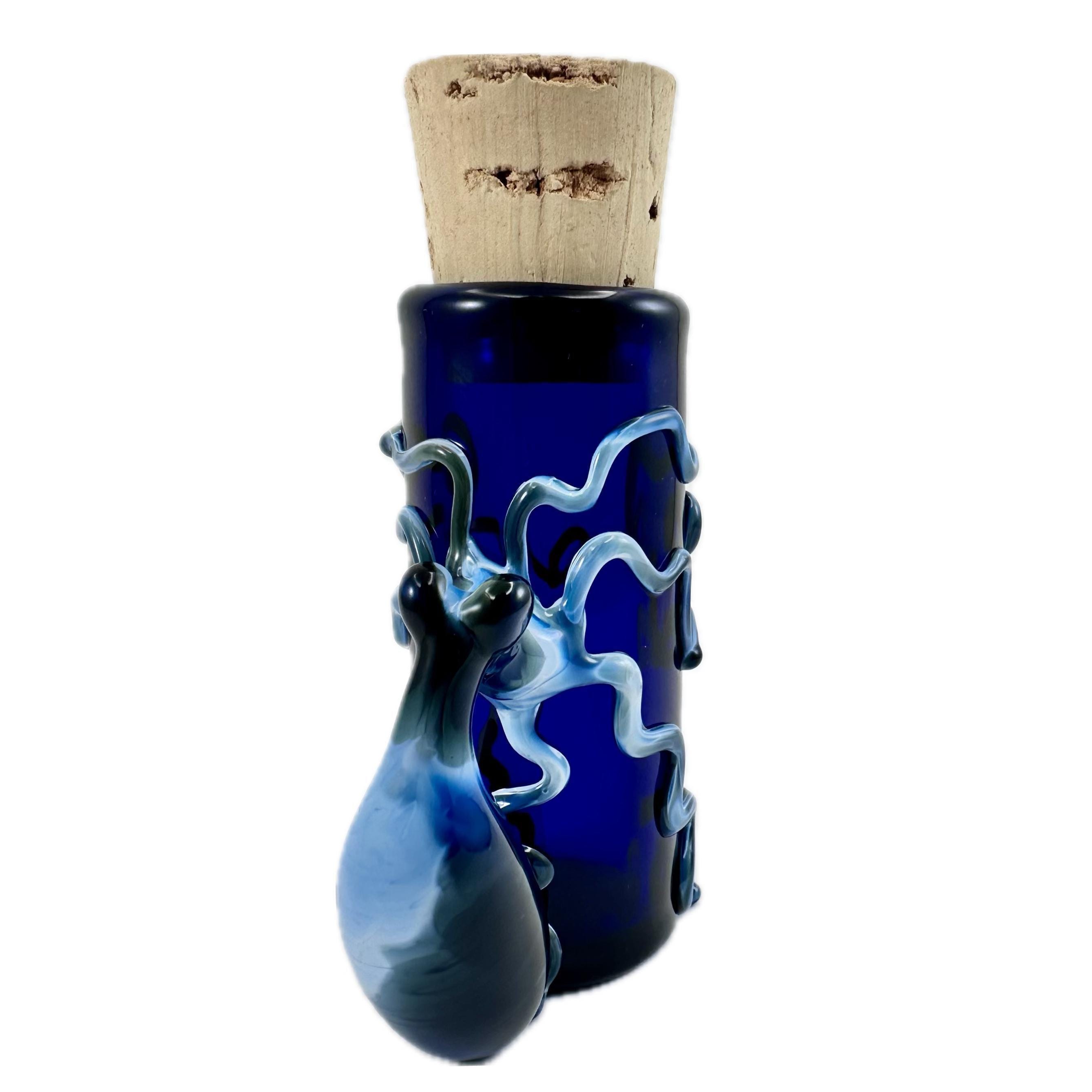Discover the charm of the Octopus Stash Jar, a beautifully hand-blown cobalt blue glass creation that adds artistry and function to your collection. This unique borosilicate jar features a detailed flamework octopus design, perfect for those who appreciate high-quality glass craftsmanship.