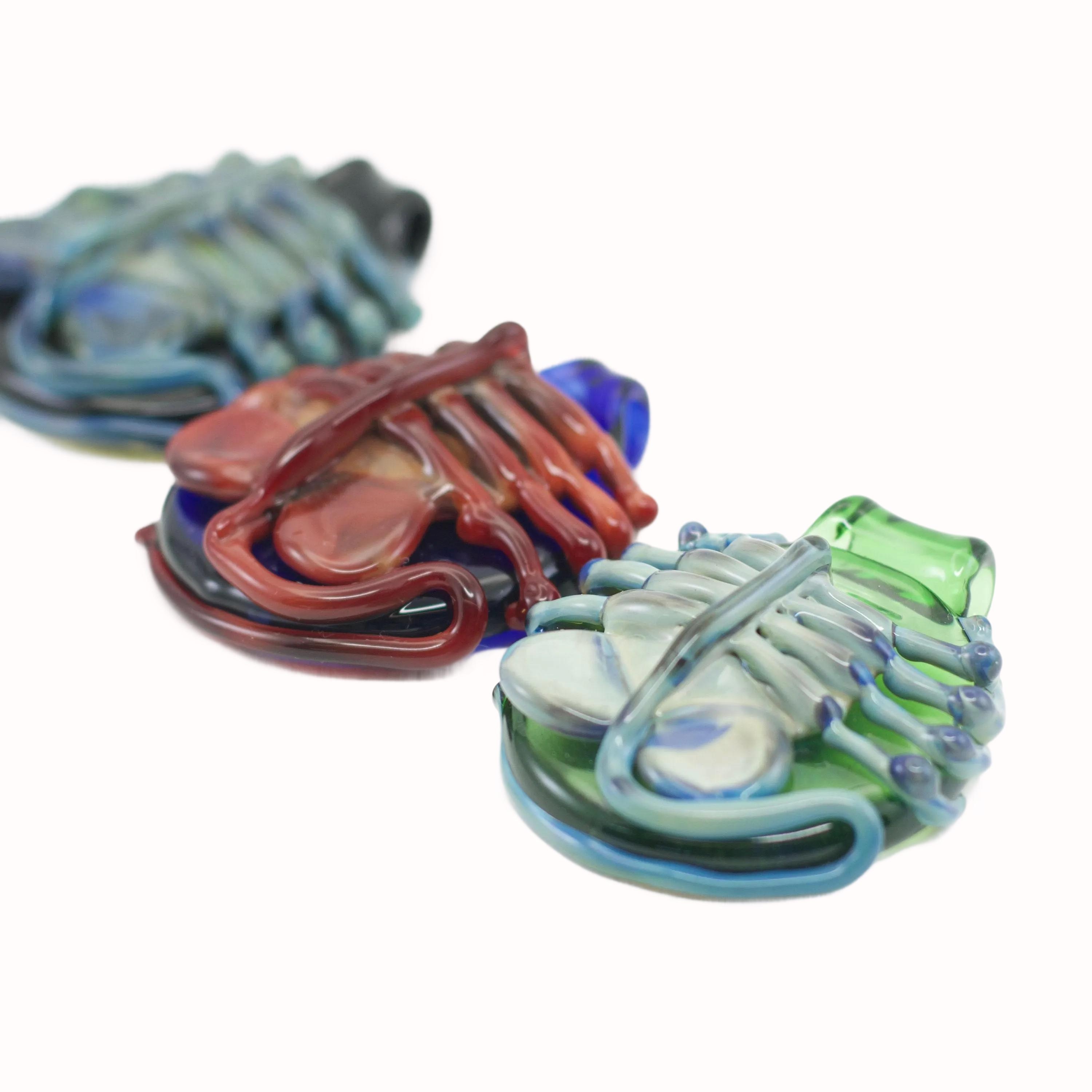 This handmade facehugger pendant and alien necklace is crafted from durable borosilicate glass, perfect for sci fi jewelry lovers and Alien movie fans alike. Inspired by the iconic Xenomorph creature, each glass pendant features detailed rib-like legs and a bold horror pendant design that captures the essence of the Alien franchise.